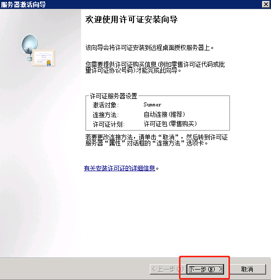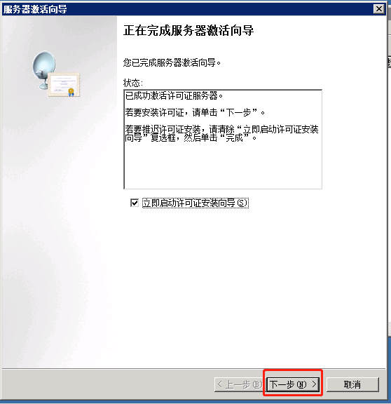 默认已经勾选“立即启动许可证安装向导”,直接下一步